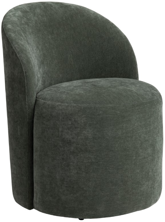 Wrap your guests in rich, modern comfort. This dining chair showcases the same sculptural barrel silhouette and whisper-quiet 360° swivel as its ivory companion, now dressed in a luxe moss-green performance boucle that hides everyday wear with earthy sophistication.Read More