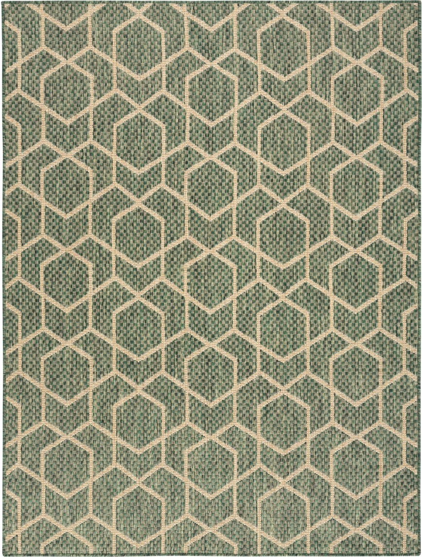 Geometric outdoor rug adds an instant pop of pattern