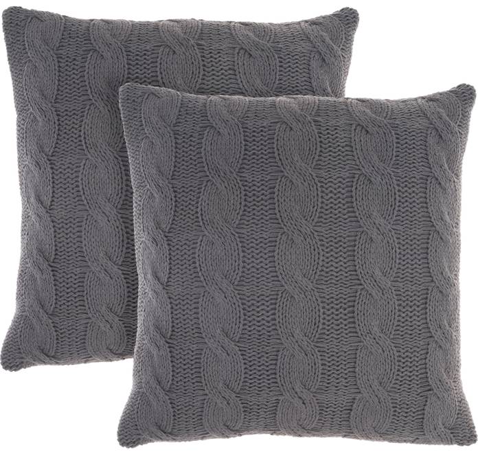 Like your favorite winter sweater, these textured throw pillows from Mina Victory Home Accents bring tons of warmth and comfort. Featuring a classic cable knit pattern in charcoal grey, this 2-pack pillow set feels wonderfully soft and snuggly. Made from cotton in an 18 square, with polyester inserts included. Zipper closure.Read More