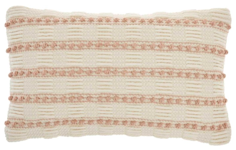 Charming and casual, this textured throw pillow from Mina Victory Home Accents easily ups the comfort level of your couch or bed. Its soft poly-cotton cover is adorned with woven stripes and linear dots in blush pink on a neutral ivory base.Read More