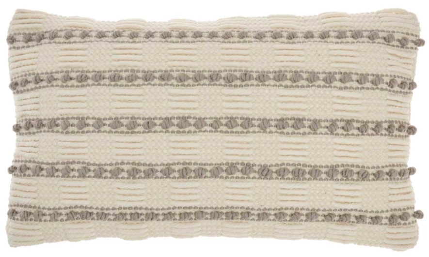 Charming and casual, this textured throw pillow from Mina Victory Home Accents easily ups the comfort level of your couch or bed. Its soft poly-cotton cover is adorned with woven stripes and linear dots in light grey on a neutral ivory base.Read More