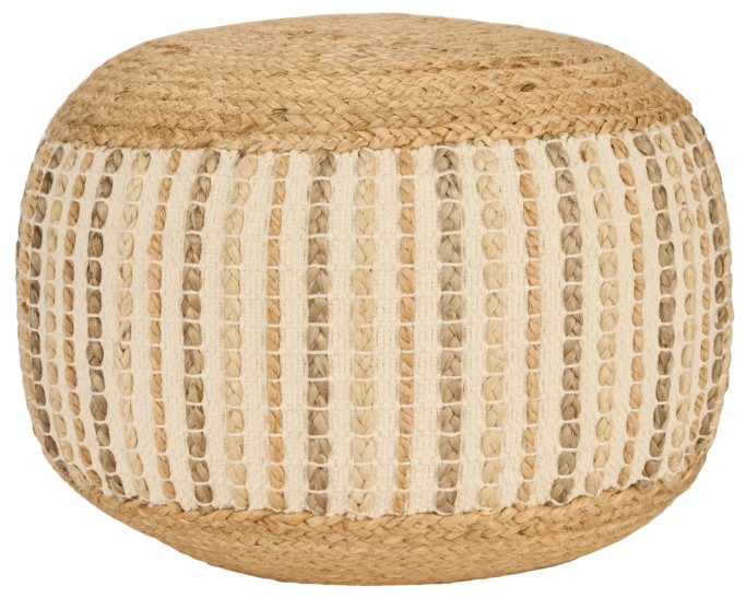 Equal parts coastal and modern, this textured ivory pouf from Mina Victory brings relaxed style to your favorite space. Jute ropes adorn the cotton cover, which is complemented by a braided jute topper that creates a firm surface to prop your feet on.Read More
