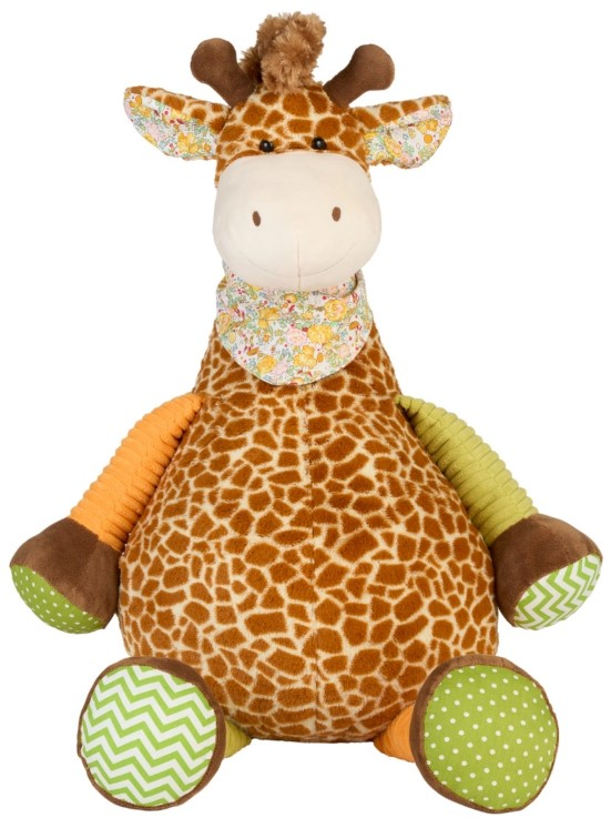 This whimsical stuffed giraffe is ready to join your little ones for playtime, naptime, and beyond! The overstuffed body is perfect for cuddling, especially when paired with fun textural accents like velvet ribbed arms, plus mixed fabric ears and hooves. Stuffed animal measures 22x 26; made from 100% polyester.Read More