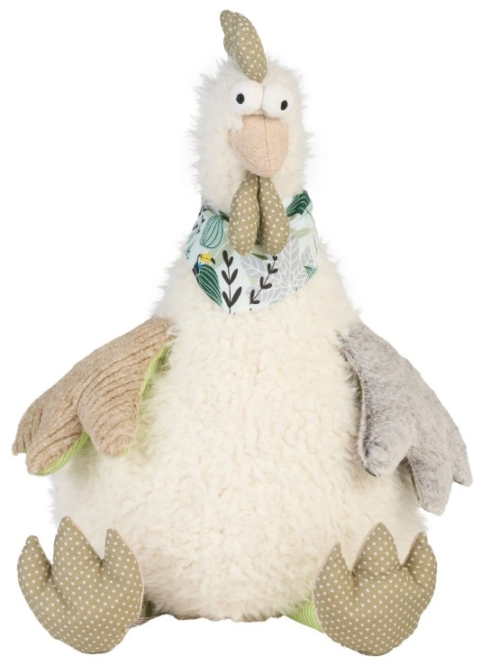 Decked out in an adorable fabric neckerchief, this fluffy stuffed rooster is the perfect cuddle companion! This cheerful stuffed animal is brimming with texture from its fabric feet to the mixed sweater and classic plush arms. Stuffed animal measures 22x 26; made from 100% polyester.Read More